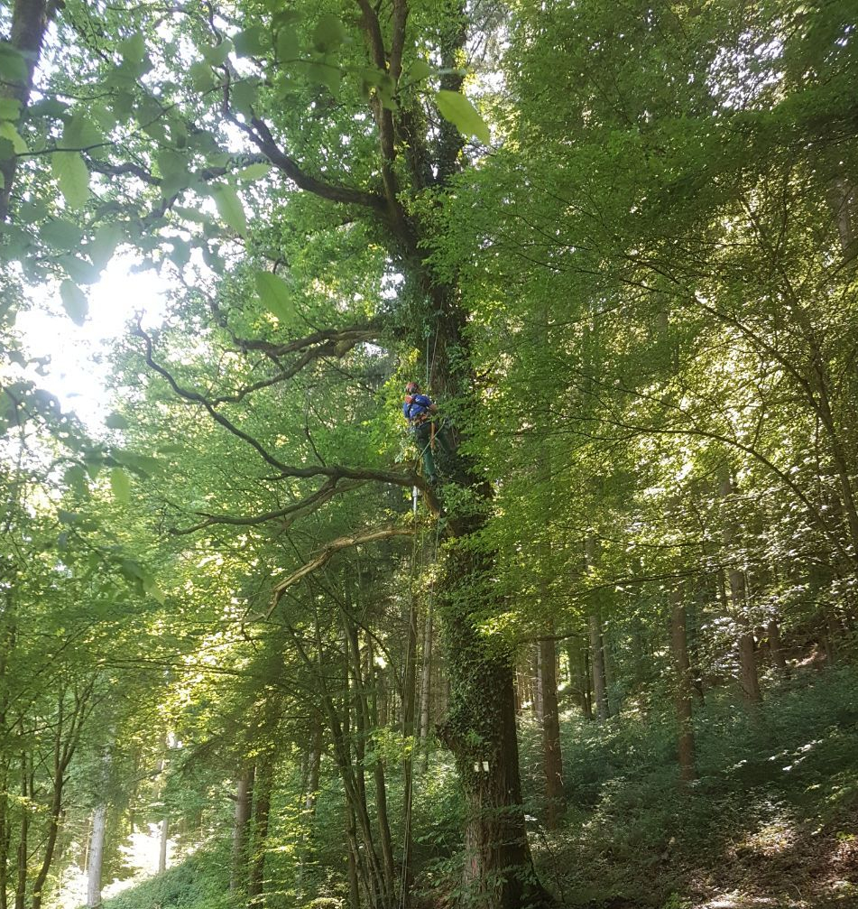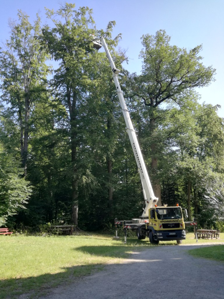 Unter Baumpflege versteht man alle Maßnahmen, um die Vitalität eines Baumes zu erhalten. Wir führen mit Hilfe von Seilklettertechnik oder Arbeitsbühnen Kroneneinkürzungen und Totastentfernungen durch.