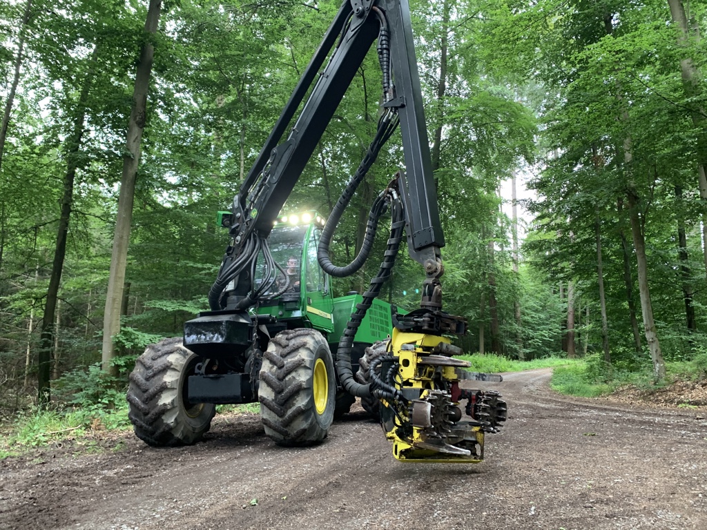 Aus diesem Grund nutzen wir einen John Deere 770 Schwachholzharvester. Er ist mit seiner kleinen, kompakten Bauweise ideal für junge Bestände. Mit seinen 11 Tonnen Gewicht, wiegt er zudem nur knapp die Hälfte eines „normalen“ Harvesters.